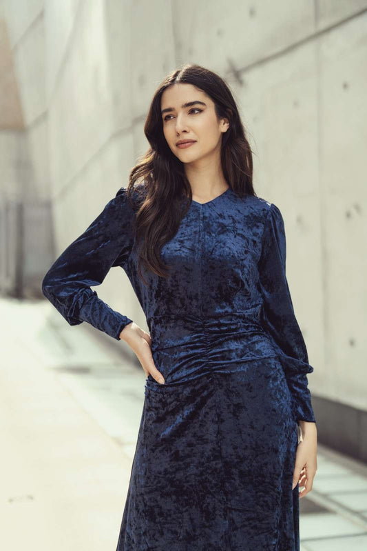 JANELLE DRESS - NAVY VELVET